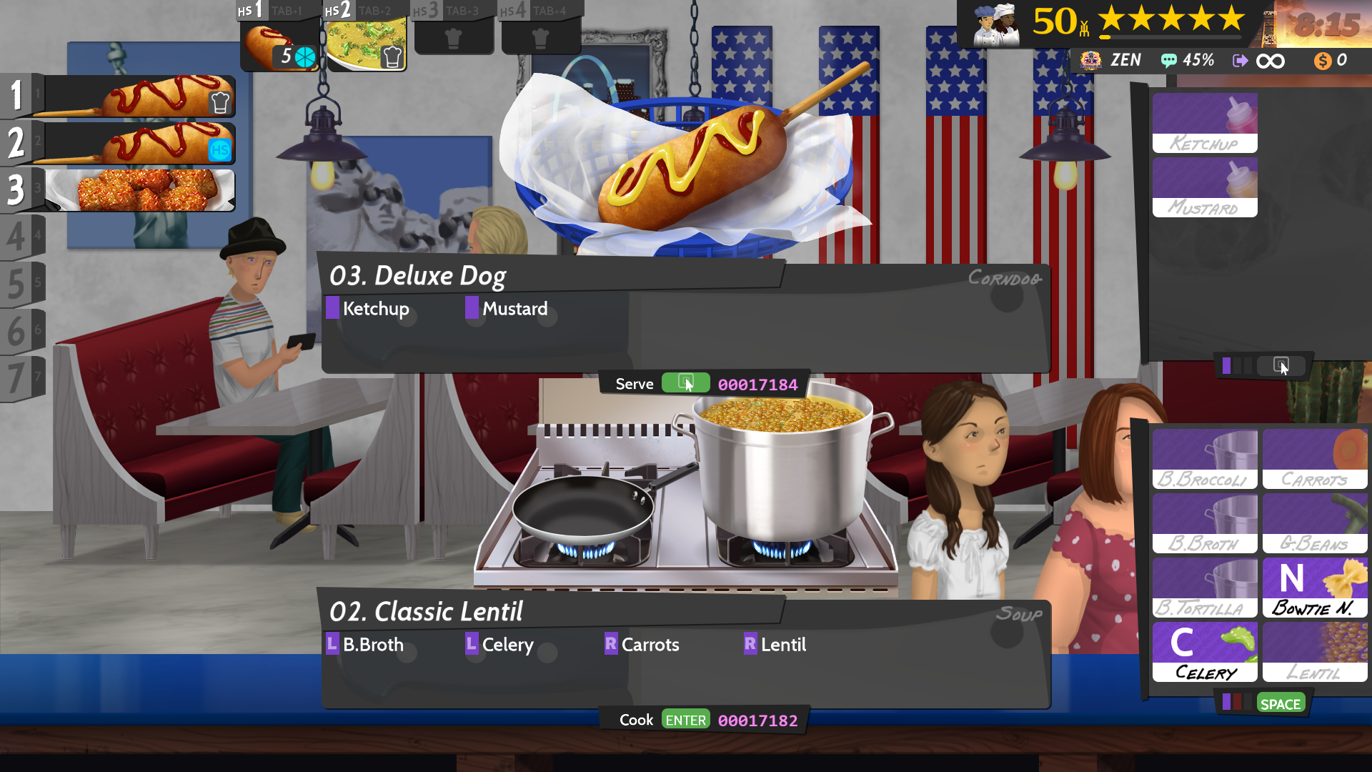 A Cook, Serve, Delicious! 2!! (EU) számos kihívást és feladatot kínál, amelyek teszik próbára a gyors gondolkodási képességeidet és a menedzsment-tudásodat. A játékban a feladatod az, hogy a vendégek megrendeléseit gyorsan és pontosan teljesítsd, miközben ügyelsz a konyha berendezésének és a személyzet hatékonyságának optimalizálására. Minél több elégedett vendéget szolgálsz ki, annál több pénzt kereshetsz, amelyet új receptek, berendezések és fejlesztések vásárlására fordíthatsz.