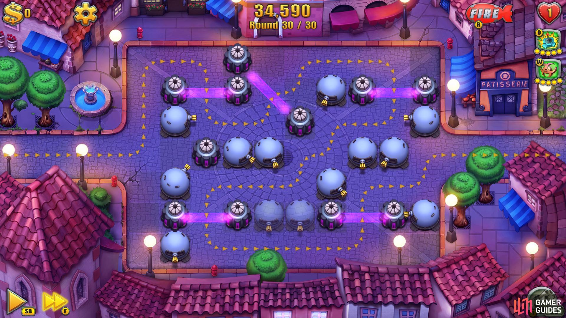 A játékmenet egyszerű, de mélységes: a játékos pénzt kap, amit különböző tornyok építésére és fejlesztésére költhet. A tornyoknak különböző képességeik vannak, mint például a lőfegyverek, a robbanóanyagok vagy a lassítók. A játékosnak stratégiai módon kell elhelyeznie a tornyait, hogy optimálisan védje meg a bázisát.