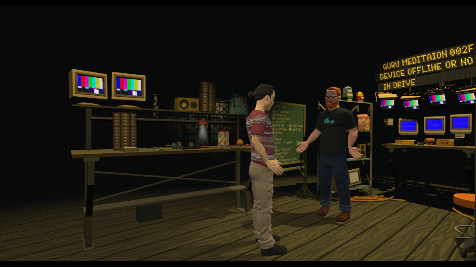 A Quadrilateral Cowboy egy izgalmas, rejtélyekkel teli, első személyű, lopásos kalandjáték. Játékosként egy zseniális, de kissé félénk hackert irányítasz, aki a technológia határait feszegeti, hogy rejtélyeket oldjon meg és értékes tárgyakat lopjon el.