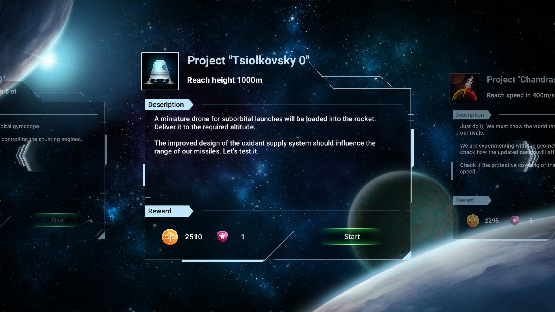 Küldetés tervezés: Különböző küldetéseket választhatsz, mint például a műholdak pályára állítása, a Holdra repülés, vagy akár a Marsra utazás. A küldetéseknek speciális követelményei lehetnek, például az üzemanyag-fogyasztás vagy a teherbíró képesség tekintetében.
